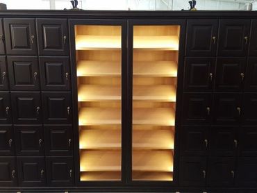 Our 15,000 sq ft shop with CNC capabilities allows us to provide our customers any size project from elegant walk in humidors, Making our own Spanish Cedar Moldings, lockers to turn key shops.